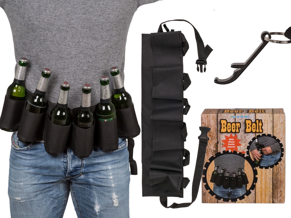 Pas wykonany jest z wysokiej jakości tworzywa, posiada regulowaną plastikową klamrę, dzięki czemu dopasuje się do każdego brzucha 😉 Dodatkowym atutem jest metalowy otwieracz do butelek, który sprawia, że gadżet jest w pełni funkcjonalny. Całość zapakowana w kolorowy kartonik prezentowy, gotowy do wręczenia.